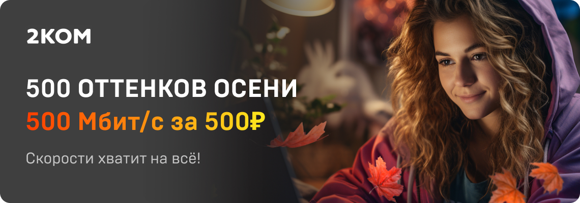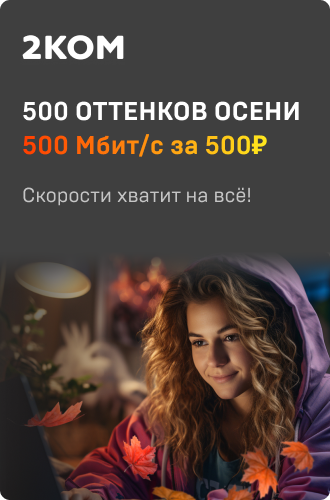 При подключении тарифа 2ком с интернетом 500 Мбит/с, провайдер 2ком предлагает выгодные условия на оплату услуг. Также вы получаете роутер в аренду на все время пользования тарифом.