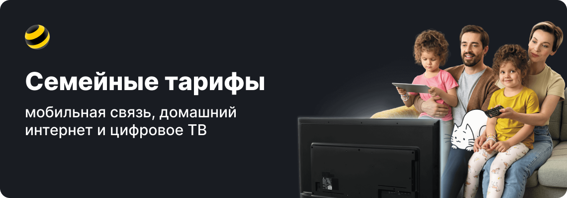 Билайн предоставляет широкий выбор комплексных тарифов, которыми можно пользоваться всей семьей. Выберите подходящий вариант в зависимости от своих потребностей. В тарифах предлагается интернет со скоростью 300 и 500 Мбит, цифровое ТВ и мобильная связь.