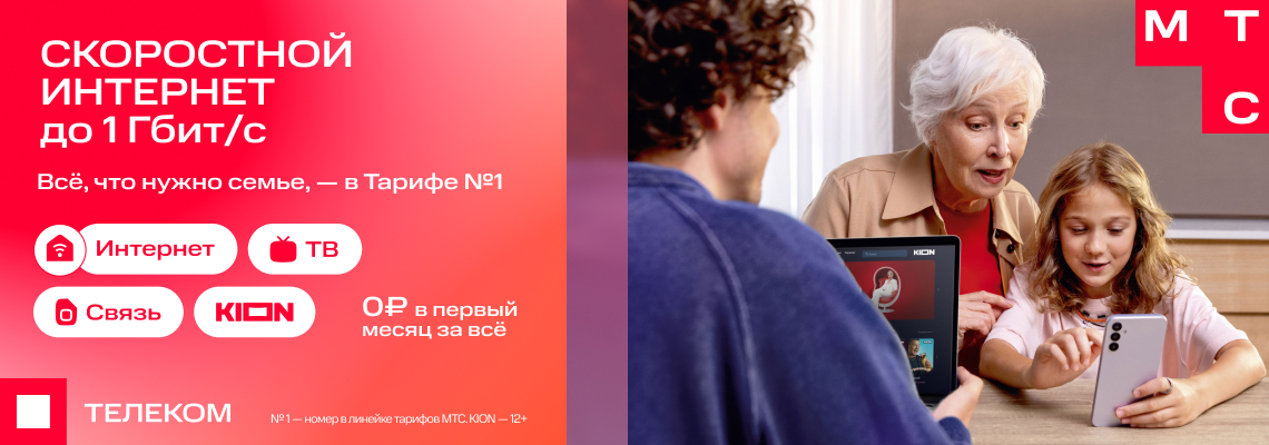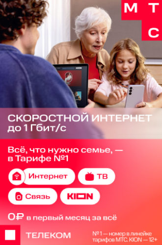 Компания МТС предоставляет выгодный Тариф №1 от МТС с комплексными услугами на интернет, телевидение и мобильную связь. Все услуги объединены в единый пакет и оплачиваются по одному счету. Также можно выбрать моно тариф только на интернет.